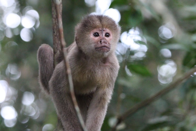 Squirrel Monkeys search for food in the Amazon’s canopy areas.A sloth slowly makes its way along a tree branch.Stinky Turkeys are one of over 580 species of birds in the Amazon.The Wooly Monkey is one of over 10 species of monkeys in Cuyabeno Wildlife Reserve.
